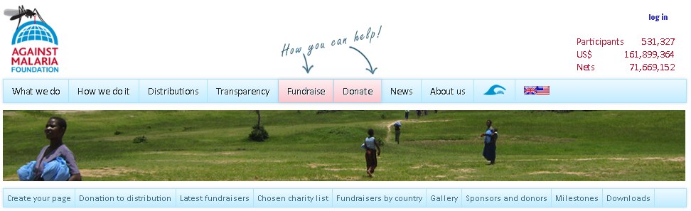 https://www.AgainstMalaria.com/russiaagainstmalaria — страница по сбору средств для Against Malaria Foundation от русскоязычного сообщества эффективного альтруизма. Здесь вы можете перевести этой организации деньги на покупку антималярийных сеток, а мы в свою очередь, сможем отслеживать эффективность привлечения внимания к проблеме среди русскоязычного населения.