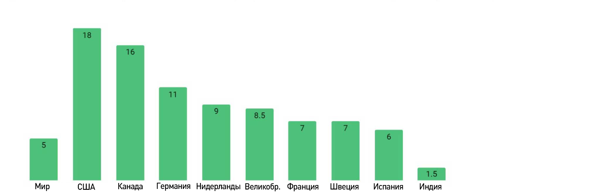 Эмиссия на душу населения значительно отличается даже в богатых странах: в среднем на американца приходится 18 тонн CO2 в год, тогда как на шведа в среднем лишь 7 тонн. Как правило, если вы живете в богатой стране и ведете типичный образ жизни, ваша эмиссия CO2 составляет от 5 до 20 тонн в год.