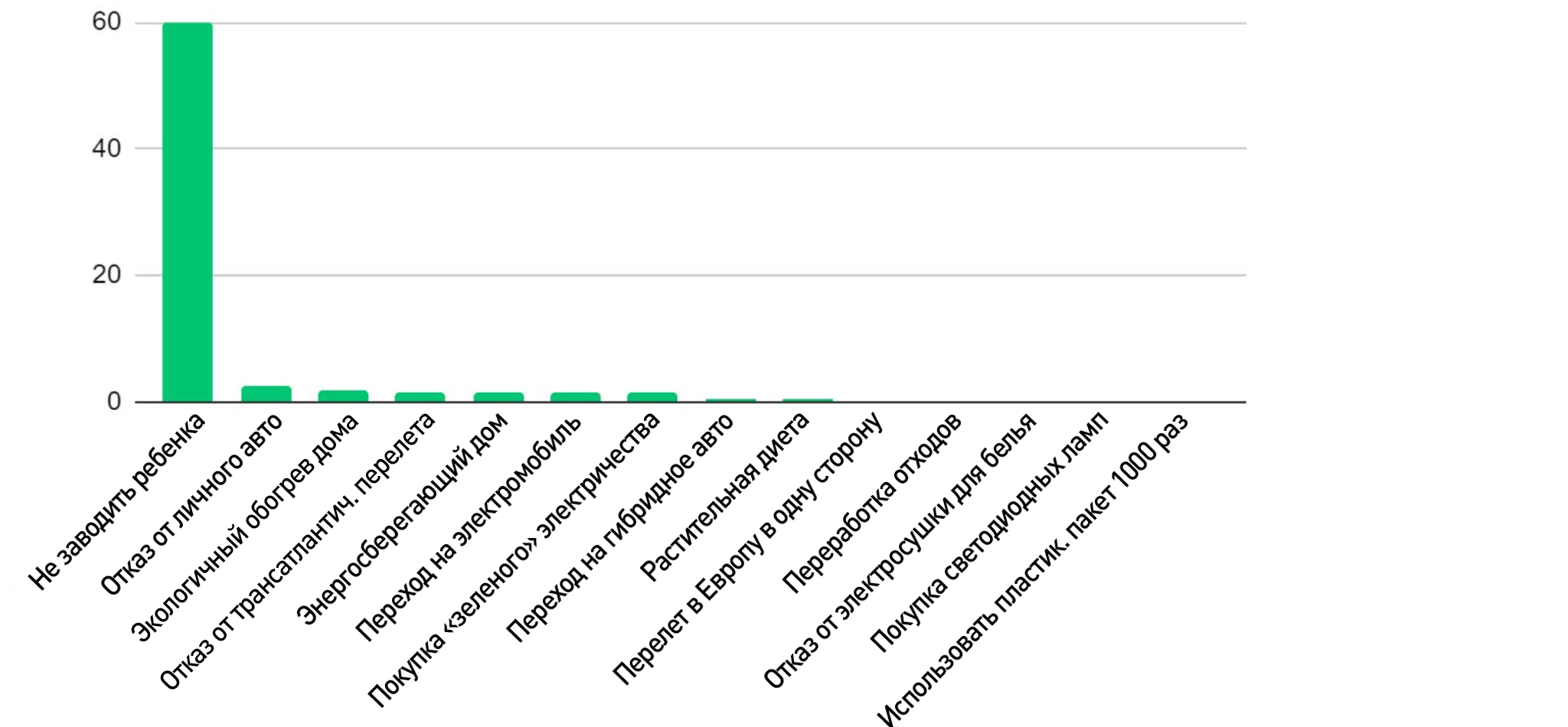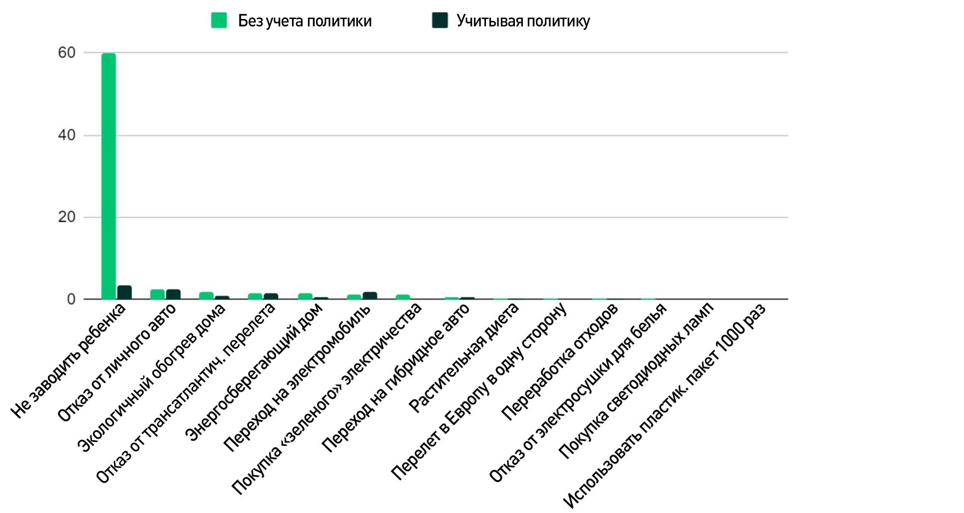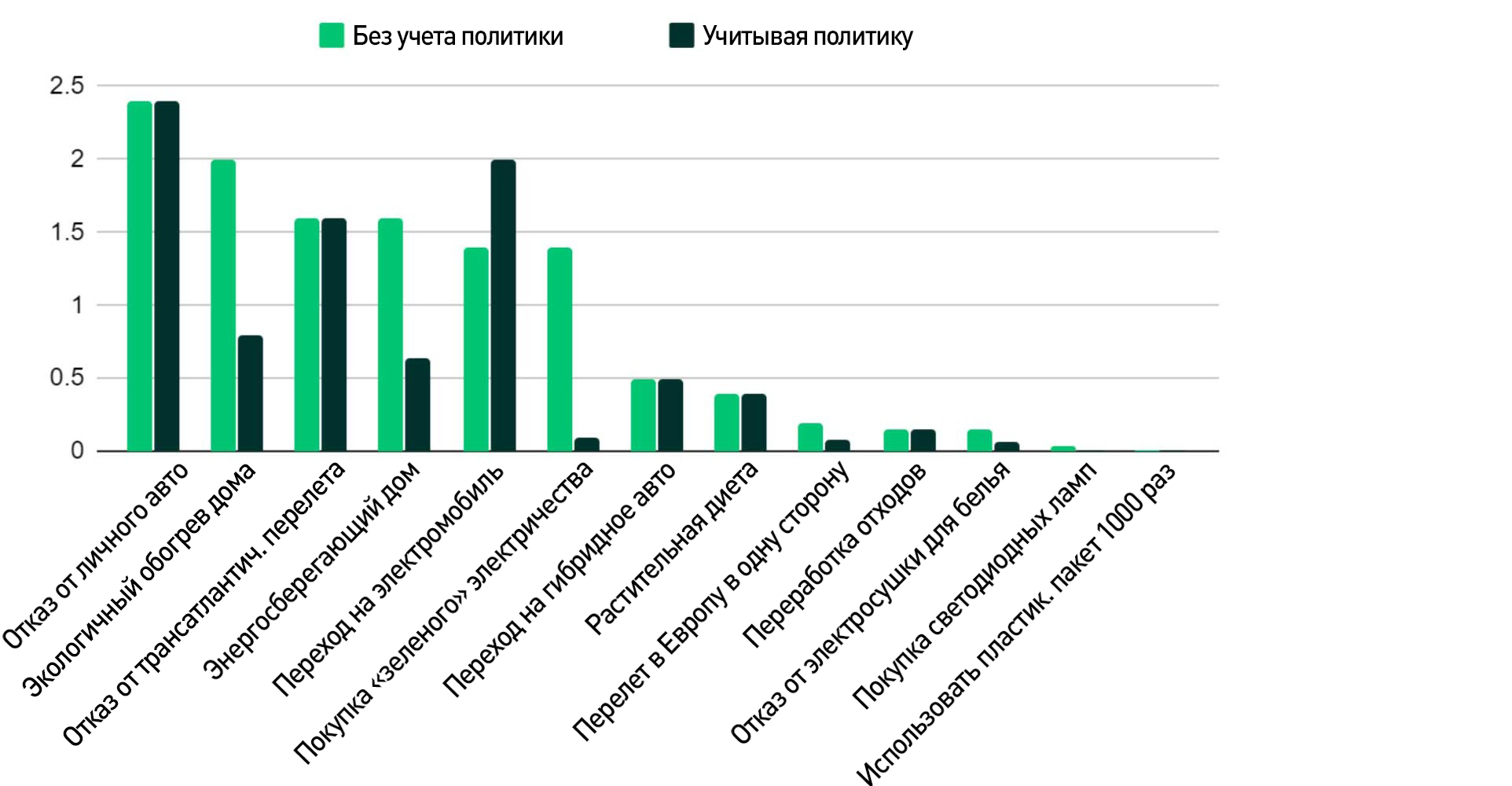 На рисунке 2 показаны наиболее важные для климата решения в области образа жизни, игнорируя эффекты от государственной политики и личные пожертвований в климатические организации.